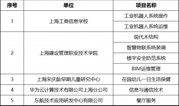 首批“青浦区技能人才培育实训基地”名单