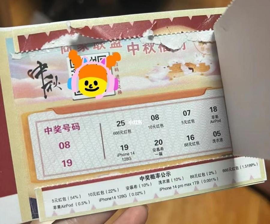 在收到的“免费月饼”快递内,抽奖券上显示不少网友都抽中了iPhone14 128G。