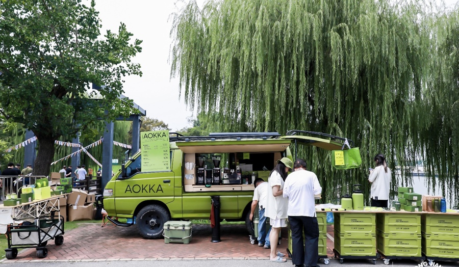 咖啡既是独特的口感与享受,也是浓郁的文化与情怀,更是一种生活的态度与追求。现场除了标准的咖啡展位,还设置了多个特装展位。其中,既有“帐篷+躺椅”的露营咖啡,也有追逐自由、承载浪漫的咖啡车,提供多样化的咖啡消费体验。“我们的咖啡口号是生于旷野、自由浪漫,所以我们希望能够用这种形式,让大家品尝咖啡、感受美好的自然。”AOKKA咖啡展位负责人林礼武指着一台墨绿色的咖啡车介绍说。