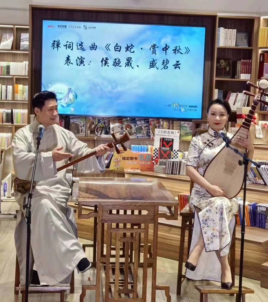 “万里此情同皎洁,一年今日最分明”。中秋之夜,花好月圆,玉露生凉,丹桂香飘。江南之地对中秋的讲究,古已有之,翻阅古籍,会发现吴地明清间中秋习俗多达数十项,饶有情趣——祭月、赏月、食月饼、玩花灯、赏桂花、饮桂花酒。月盈江南,自然也少不了吴侬软语相伴。中秋前一天,上海评弹团国家二级演员钱晏与90后青年演员侯骁晟、盛碧云、姚依依、季毅洋以评弹雅集的形式,在四川北路上的1925书局演绎评弹艺术中的“月圆人团圆”,与观众共话江南中秋民俗。