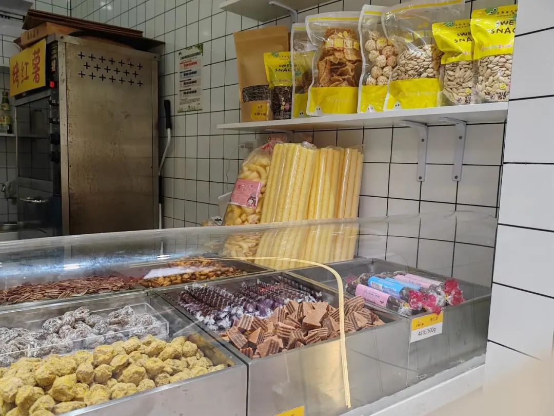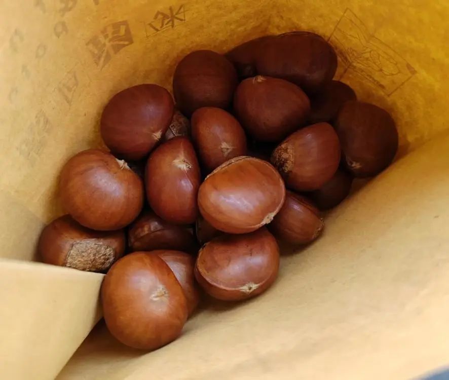 如果向店主询问这里哪种零食好吃,她一定会推荐刚刚出锅的糖炒栗子。圆滚滚的板栗现炒现卖,烟火气十足,装在纸袋里还能感受到热乎乎的温度。外壳裹着薄薄一层糖浆,轻轻一捏便裂开个小口,趁热剥开,新鲜的栗子入口香甜软糯,还带着焦糖香气。