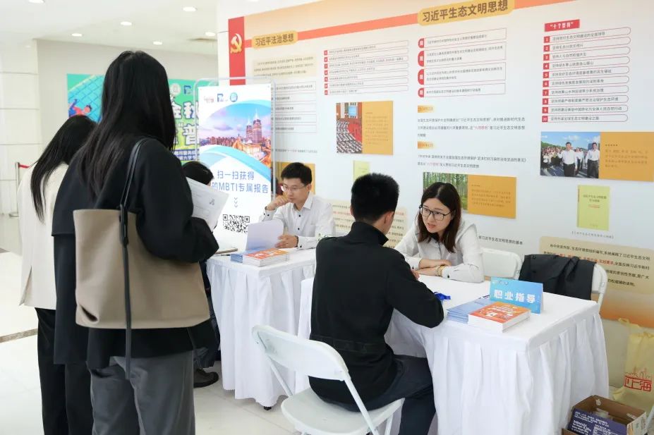 所思×所获,答疑解惑,行之有向。“什么样的简历更受HR青睐?”“面试中有哪些常见问题?”“初入职场需要做好什么准备?”……从校园到职场,毕业生们在迎接诸多挑战的同时,还面临着思维、心态、身份等多方面的转变“阵痛”。为消除毕业学年同学们的求职障碍、帮助毕业生们成功“转型”,普陀区职业指导团队将“一站式求职课堂”“嵌入”招聘会现场,设立“MBTI性格图鉴”与“职业指导快车道”两大展位,通过科学测评与专业指导帮助毕业学子寻找求职“突破点”、“解锁”职场“快车道”,通过提升个体求职能力,推动实现毕业生们换挡加速、“职”路畅通。