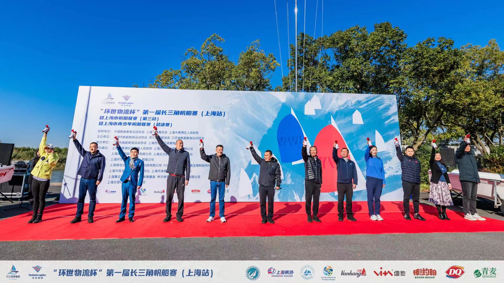 裁判员代表和运动员代表上台宣誓以后,嘉宾共同鸣笛,上海市竞技体育训练管理中心党委书记王海威宣布“环世物流杯”第一届长三角帆船赛(上海站)正式开赛。