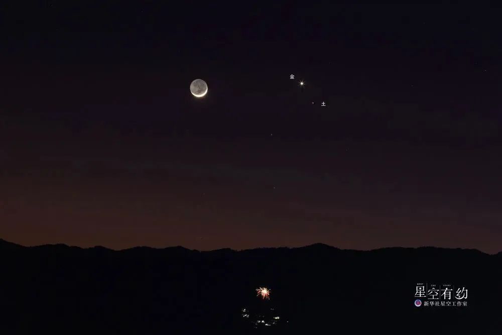云南星空摄影爱好者胡凯华2023年1月23日在云南临沧拍摄的金星土星伴月。