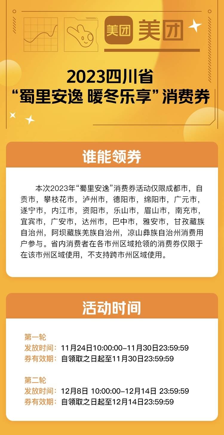四川将发放2023“蜀里安逸·暖冬乐享”消费券,消费者可上美团等平台领券