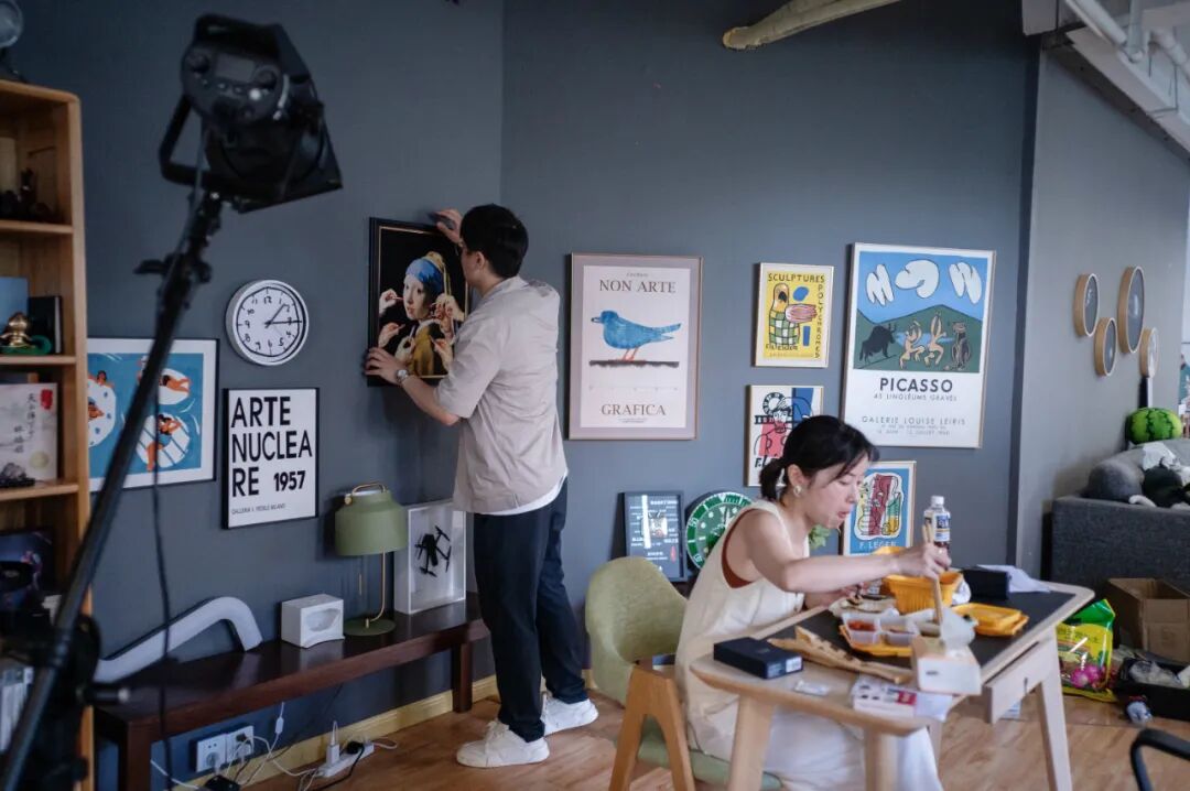 G僧东跟合伙人林仙子在拍摄B站课程。