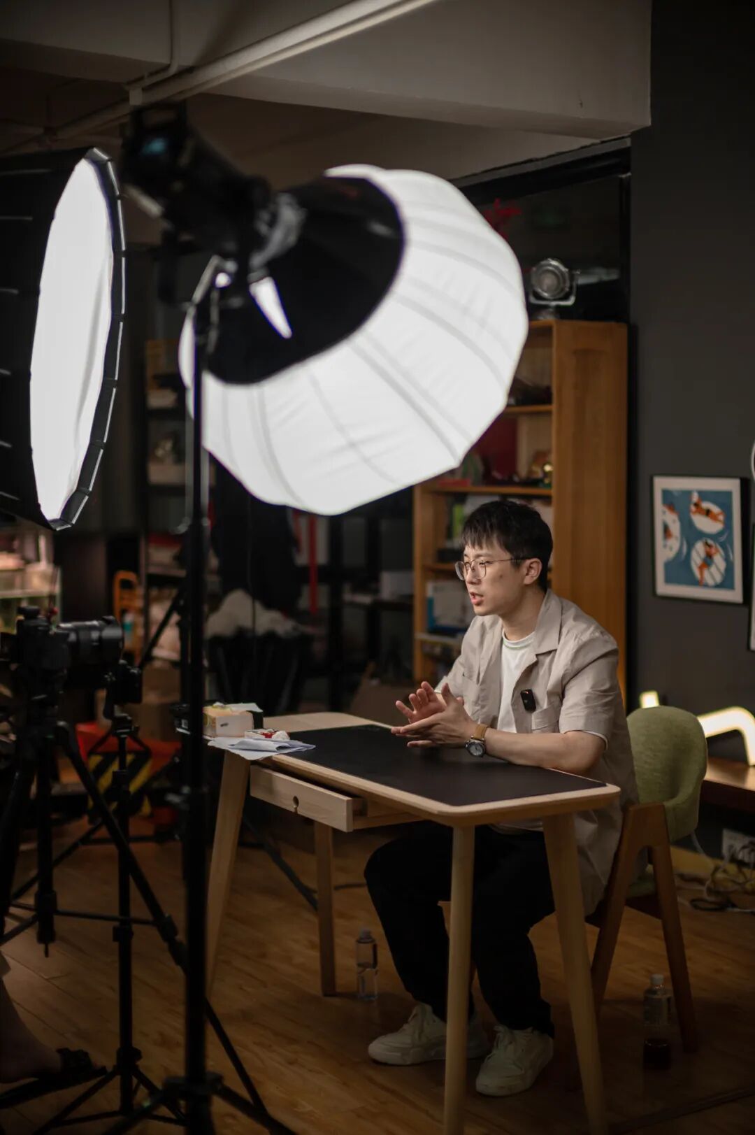 最开始,他并不习惯一个人对着镜头讲话,常常需要有熟悉的人在场才行。差不多用了一年多时间,他才适应独自面对镜头的状态。