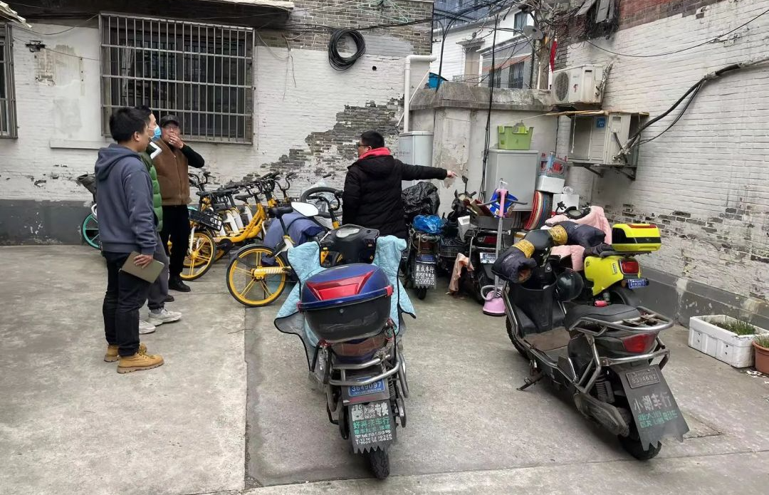 溧阳路1335弄是建于上世纪20年代的老式里弄房屋,由于没有电动自行车集中充电场所,飞线充电、车辆停放无序等现象较为普遍。在“四百”大走访中,长春居民区党总支、居委会及时了解了居民的需求,决定在弄堂内安装非机动车棚。