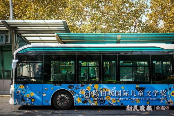 这几天,乘坐上海公交51路的乘客,有机会邂逅一辆与众不同的车。车身被蓝色贴画装饰,“陈伯吹国际儿童文学奖”字样引人注目,美术图案充满童趣。据悉,这辆“陈伯吹专车”将持续展示运营至12月上旬。