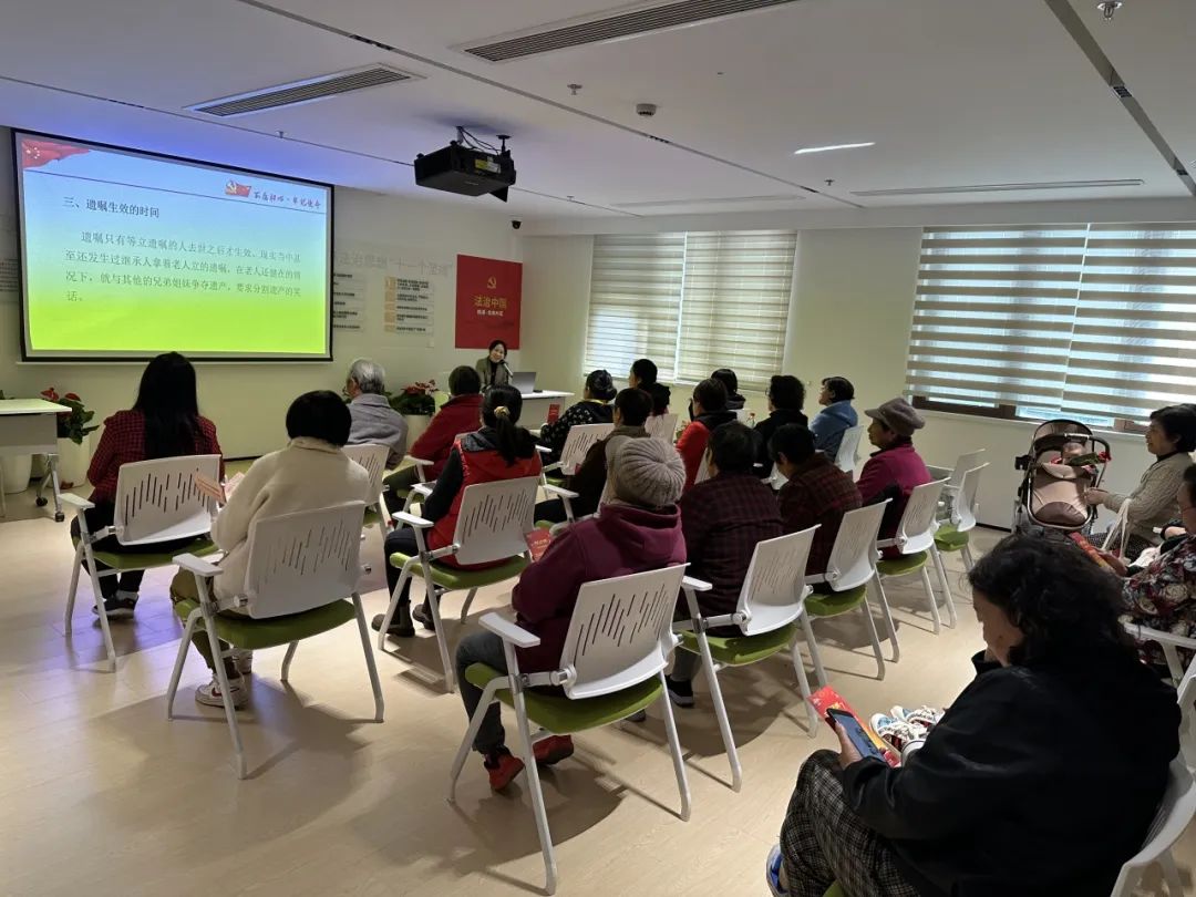 活动现场,人民调解、公安、法律咨询、法治宣传等接待点位一应俱全,为居民群众提供了答疑解惑的良好平台。法律顾问律师带来了《民法典继承编》专题讲座,深入剖析了继承权相关问题,并热情地为居民群众提供法律咨询解答。司法所工作人员还为前来听课的群众发放了自制的法宣读物,在增强居民群众法律意识的同时提升了使用《民法典》保护自己合法权益的能力。
