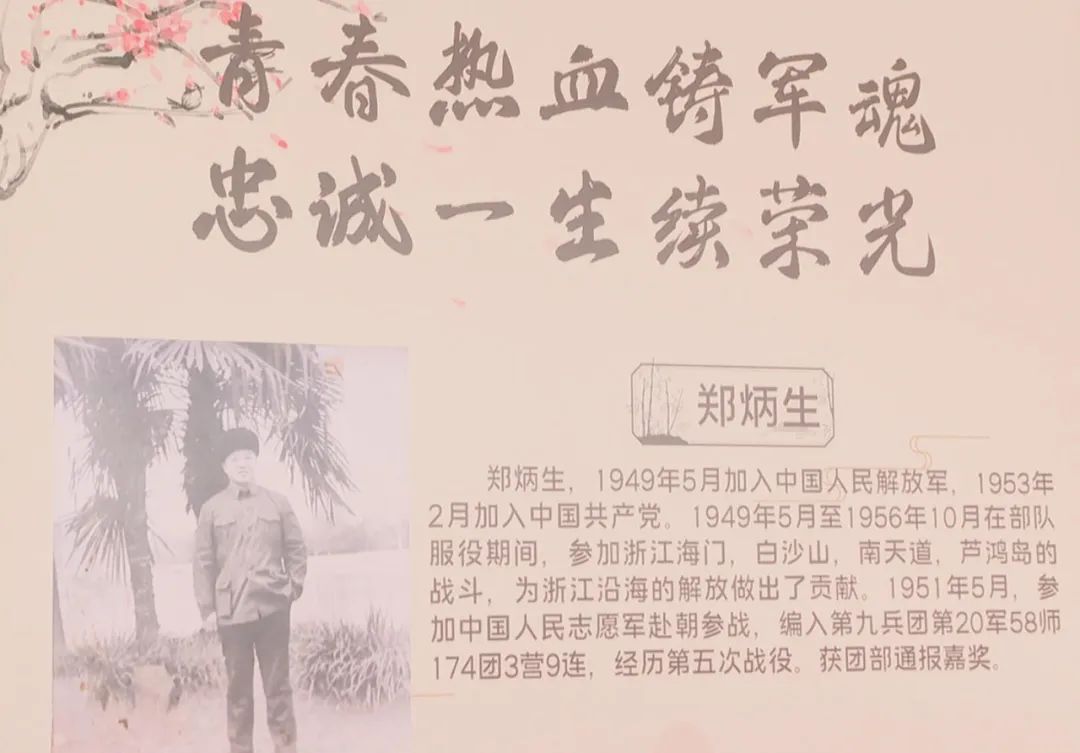 另一位于1949年5月加入中国人民解放军的老兵郑炳生,还曾参加过解放战争、抗美援朝战争,在家人的心中,他是一辈子值得尊敬的军人。每当听到老战士说起自己的军旅生活,郑炳生的子女孙辈们都会被这样的精神所感染。其女婿王剑华回忆道:“当时美军轰炸过后,我军的很多通讯电缆都破坏了,我父亲一个人孤身到敌后方去取电缆、取材料,首长让他拿把轻的枪,这样走起路来快一点,但是他说要拿把重的,这样打敌人有力度……我们当时都深受震撼与感动。”