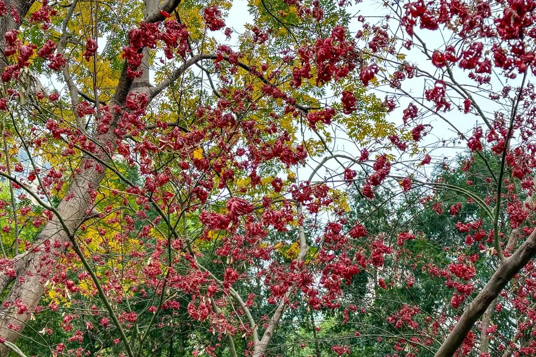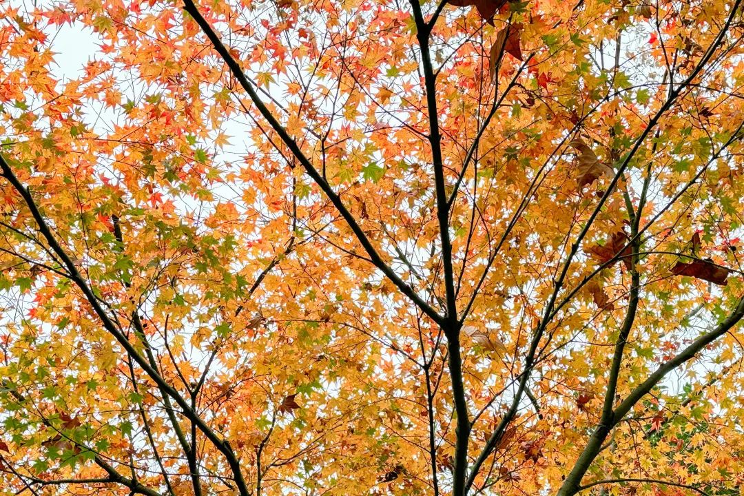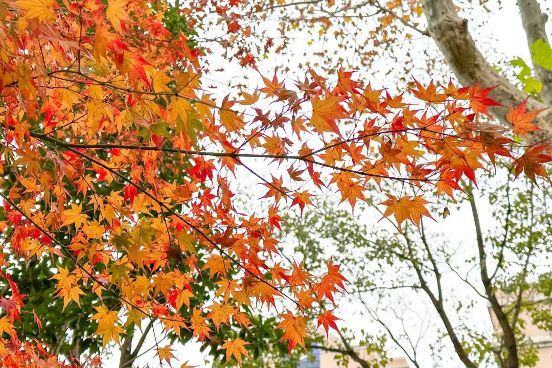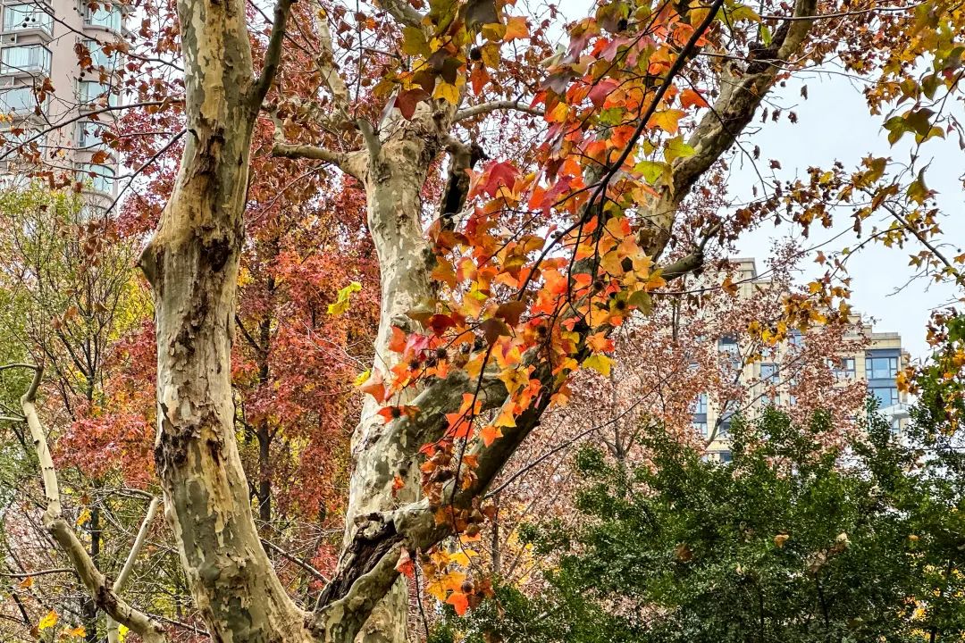 近日,黄浦区的蓬莱公园迎来了一年中最美丽的季节——晚秋。随着气温逐渐下降,公园内的树叶开始变得火红、橙黄,微风拂过,落叶满小径,仿佛一片金黄的海洋。