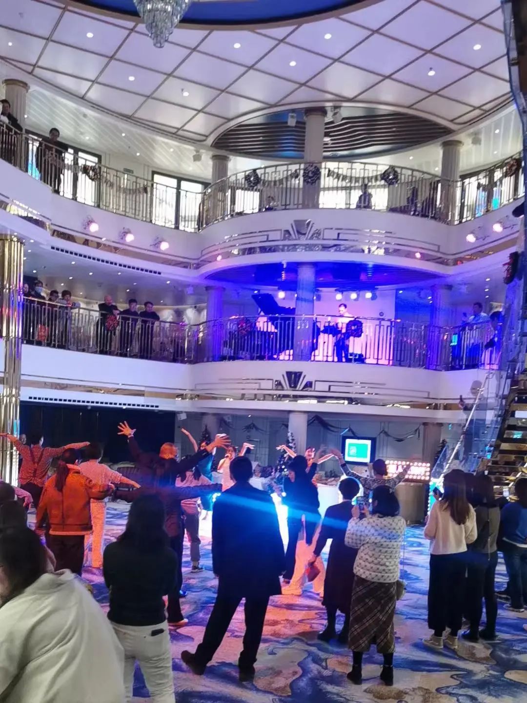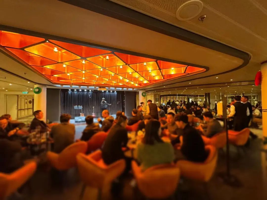 来到位于5层的慕尼黑广场,这里有酒吧、驻唱、美食,上演着邮轮夜生活