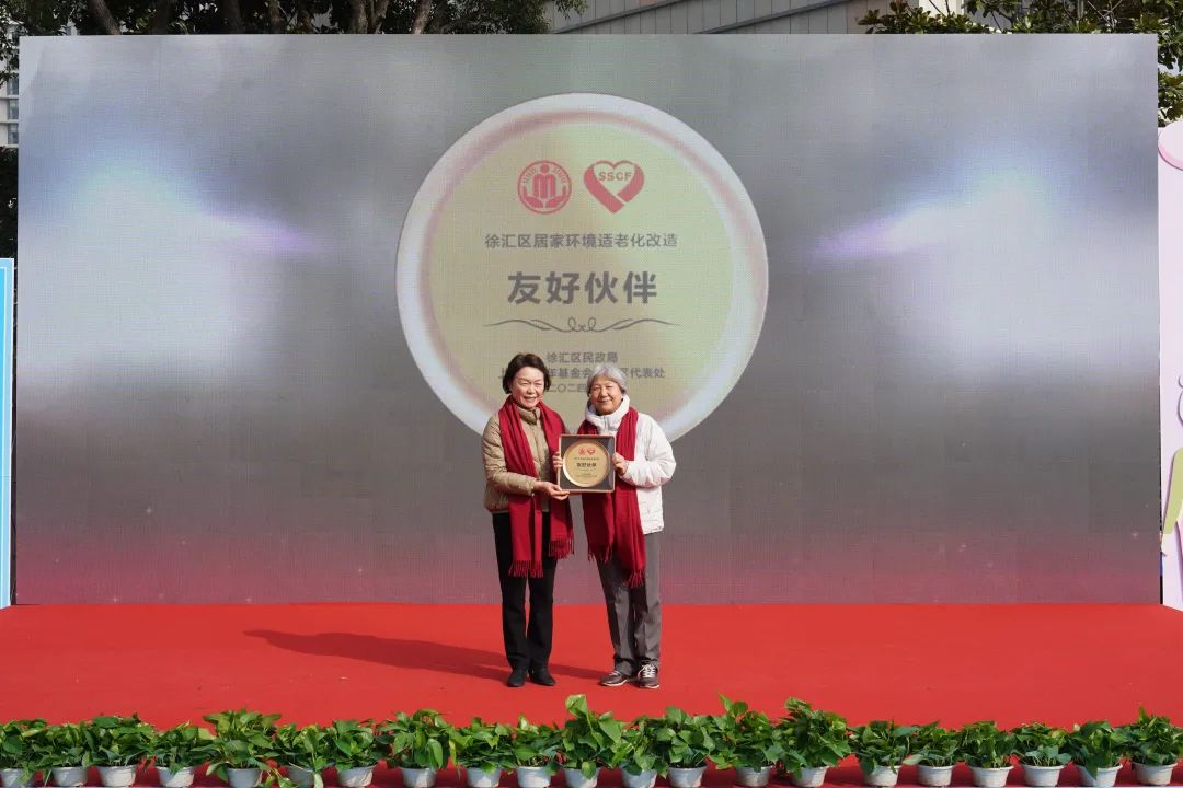 现场,上海市慈善基金会徐汇区代表处启动了徐汇区“孝亲敬老·银发颐养行动”,携手城投、徐房集团下属物业服务企业,为老年人提供“便捷性、低支出、常态化、可持续”的家门口养老服务。上海市老年基金会徐汇区代表处也在活动现场为一批适老化改造“友好伙伴”授牌。