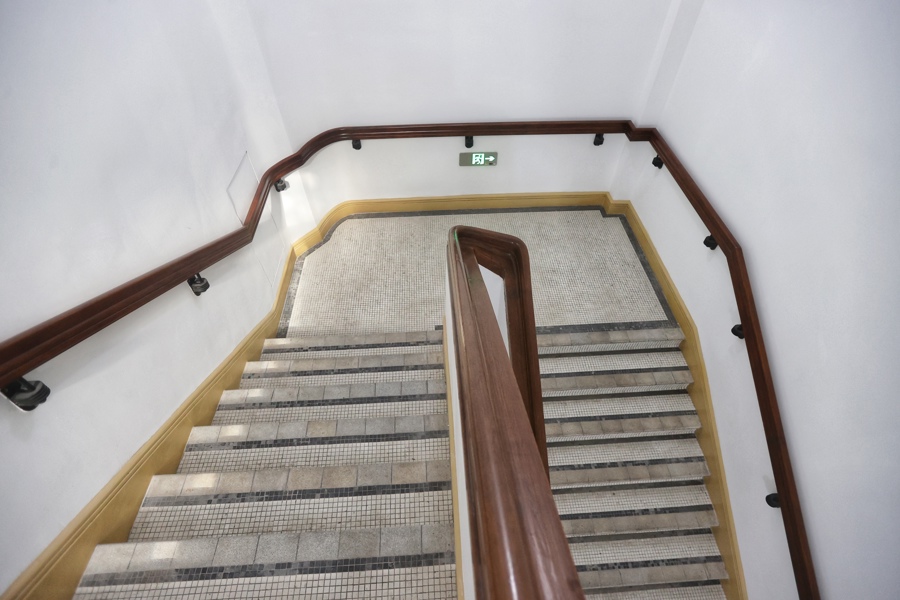翻新过后的楼梯通往工作区域。