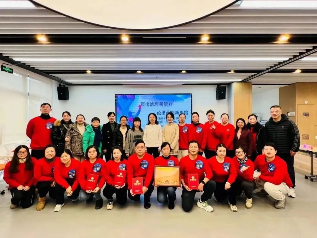 最后,现场嘉宾与正反方辩手合影留念,本次青年骨干辩论赛圆满结束。此次辩论赛是一场智慧与口才的较量,也是社工们思维博弈、展示自我风采和专业能力的大舞台。唇枪舌剑展智慧,明理论道谋发展,社区工作者们不仅在辩论赛中锻炼了综合能力素质、逻辑思维、沟通协调和团队协作等方面的能力和水平,更充分体现了新时代广大社区青年干部良好的精神面貌和丰富的工作经验。