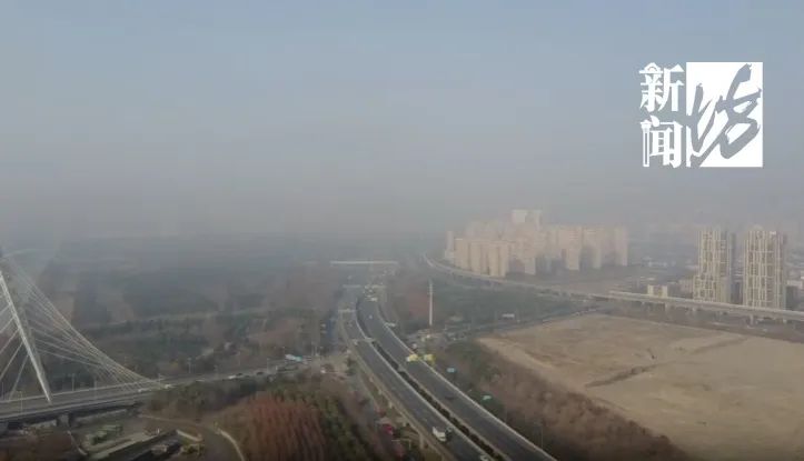 早上9点多,在嘉定南翔地区,整个天际线像是加了金色滤镜,雾气让楼宇、街道、车辆都若隐若现。
