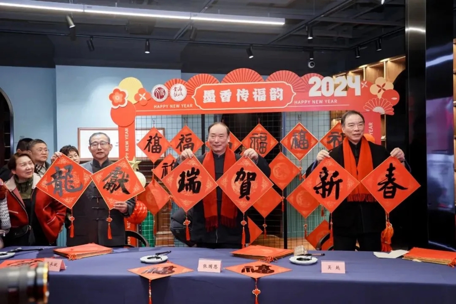 龙年新春佳节临近,黄浦区大思南统战文化广场“年味儿”扑面而来,“海上名家送福瑞,五湖四海喜迎春”新春送福活动在这里举行。