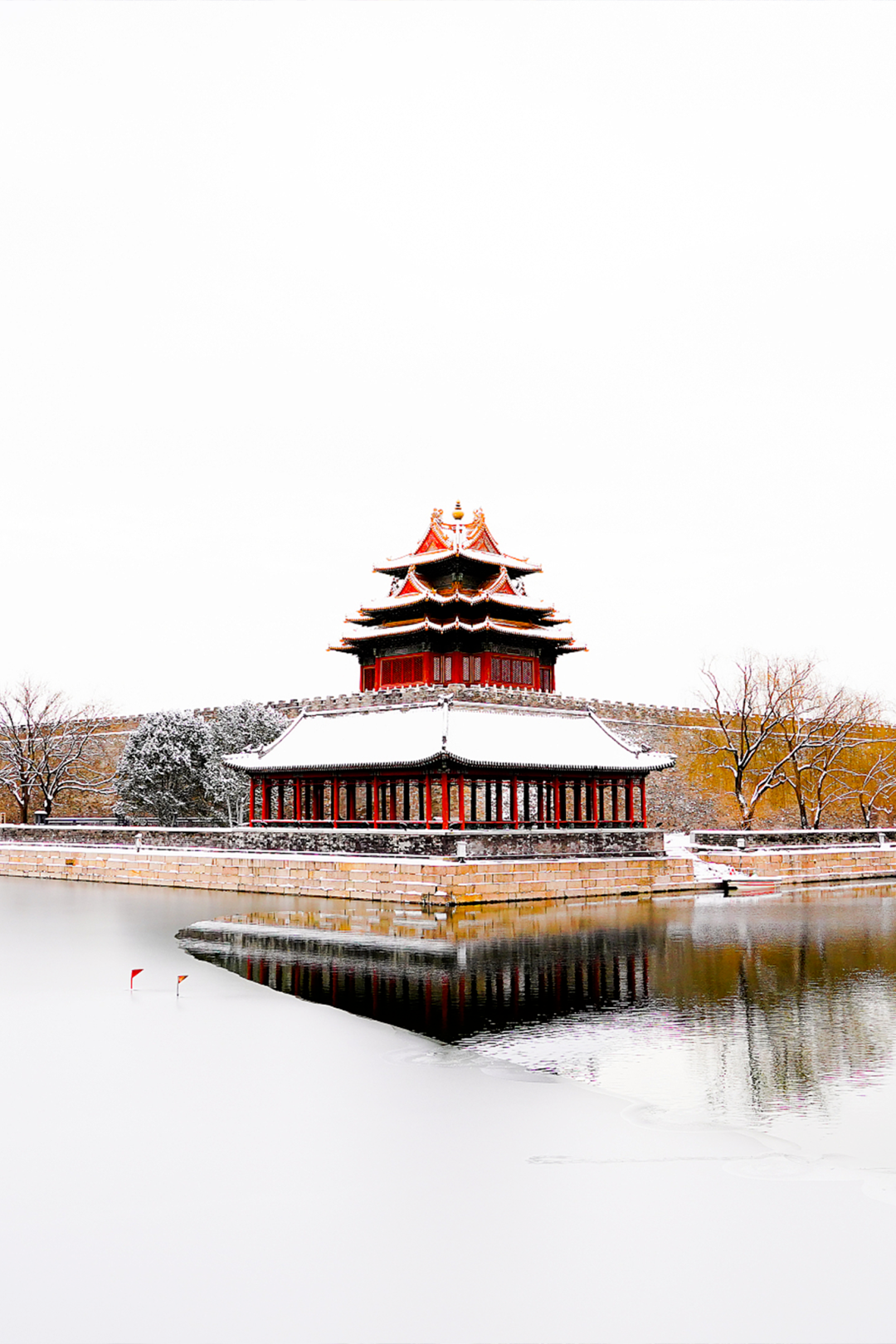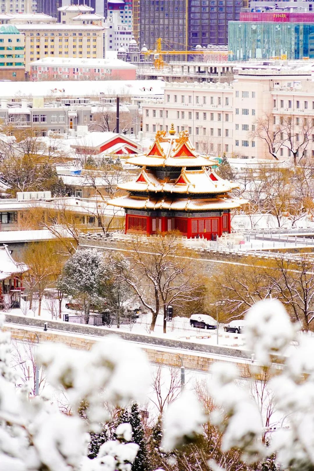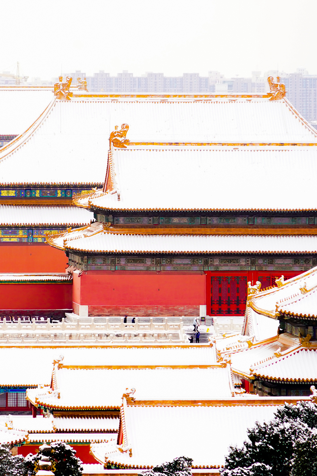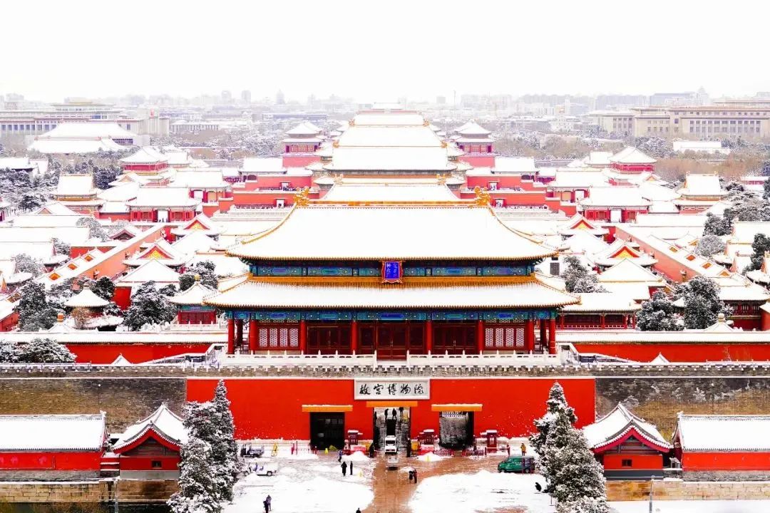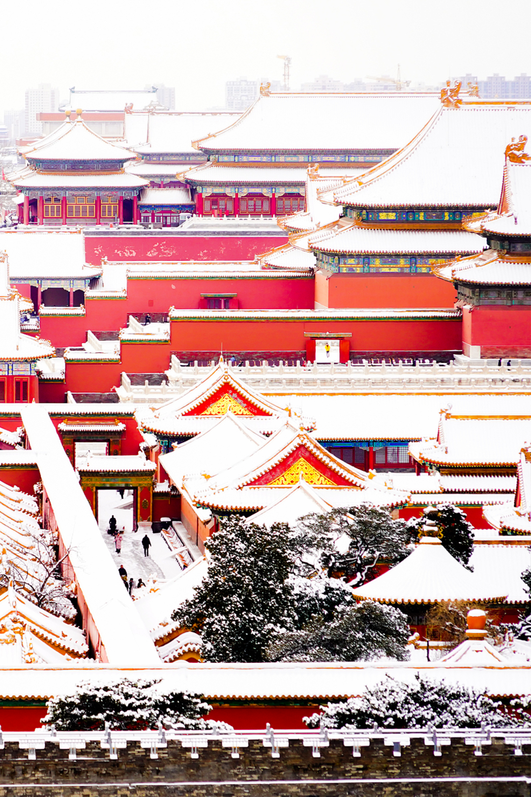 2月21日,北京。一场龙年初雪过后,大地银装素裹。故宫建筑群被白雪覆盖,红墙金瓦与白雪形成鲜明对比,显得格外庄重与宏伟,美得恢弘大气。