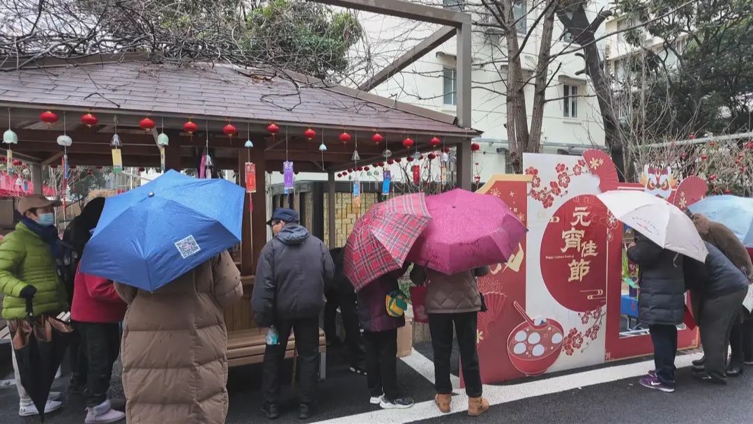 虽说这几天的天公不作美,不过元宵佳节将至,许多小区还是热热闹闹举办起了闹元宵活动,黄浦区外滩街道山北小区举办“我们的节日”——元宵节之“吉祥如意幸福JIA 元宵团圆喜乐会”新春游园活动。居民们猜灯谜、包元宵、做龙灯,还吃起了“百家宴”,热热闹闹地闹起了元宵。