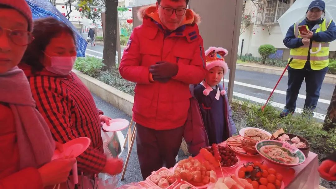 山北小区周边的餐饮商户众多,活动中,商居联盟成员单位各显身手,带来了排骨年糕、生煎、茶叶蛋等多种美食,充满吉祥如意幸福味道的山北版“繁花”美食套餐亮相,引得居民争相品尝。现场还有投壶、钓小龙等传统民俗游戏,居民们也是一一捧场,提前过了一个热闹的元宵节。