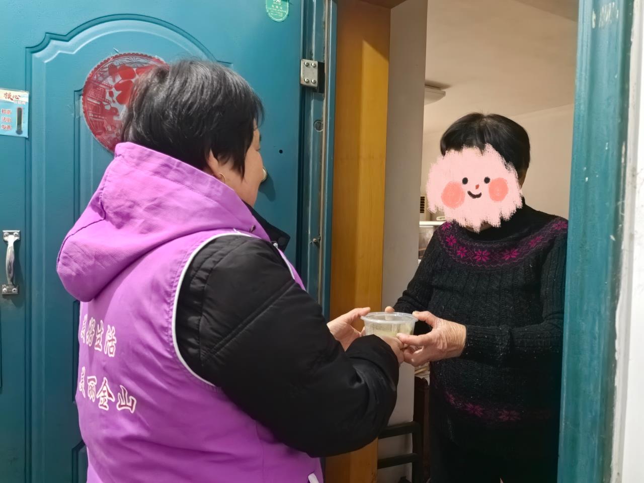 作为金山卫镇的“老伙伴”志愿者,徐阿姨日常还对接联系着五名八十岁以上的老人,不仅逢年过节上门探望、慰问,日常也经常保持联系。前来送锦旗的社区高龄老人周老伯、耿阿婆夫妇就是徐阿姨的联系对象之一。