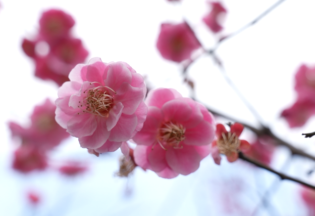 红梅的花瓣轻薄如纱,微微透明,仿佛能看到花瓣下那涌动的生命力。