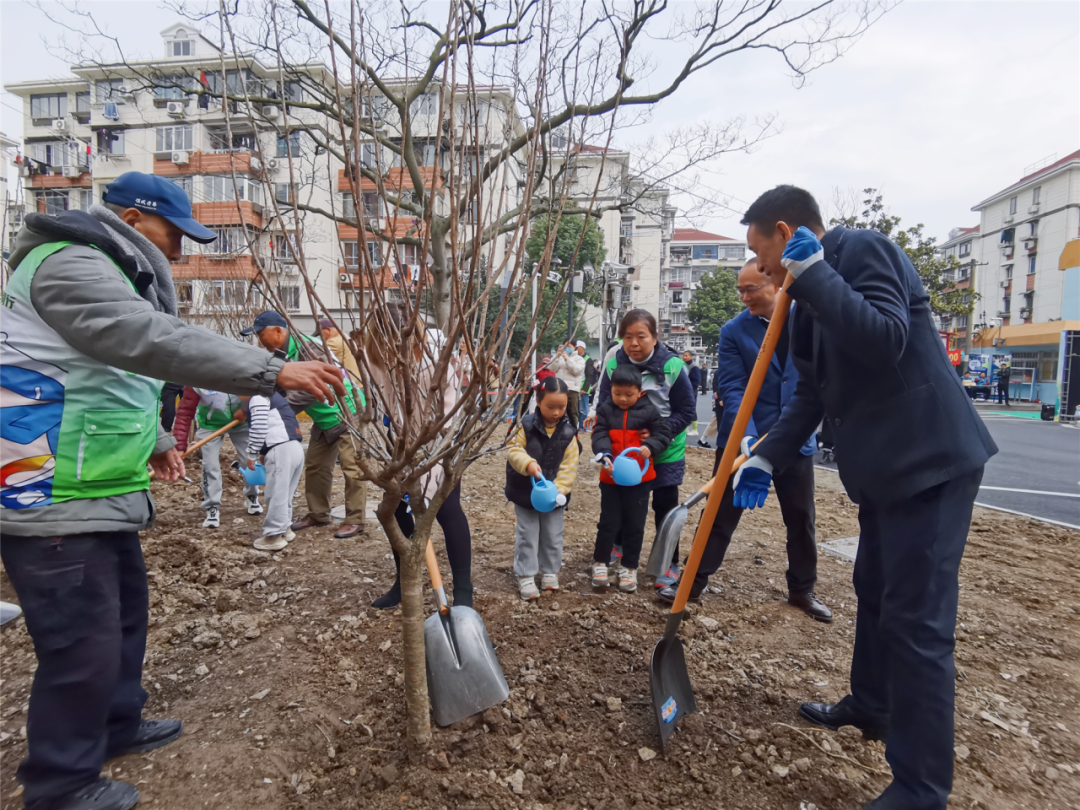 活动当天,以“厚植绿色基因,共建美丽家园”为主题,北新泾街道精品小区植树活动在新泾七村圆满举办,来自新泾七村、金钟路幼儿园的居民、老师和孩子们,一同种下6棵樱花树。“旧物换绿植、普法护绿林”宣传活动吸引众多居民参与。据介绍,新泾七村居民区已进入精品小区建设收尾阶段,绿化规整是当前工程中的重中之重,以樱花树为引子,全面优化升级社区绿化,营造绿意盎然、生机勃勃的全新面貌。