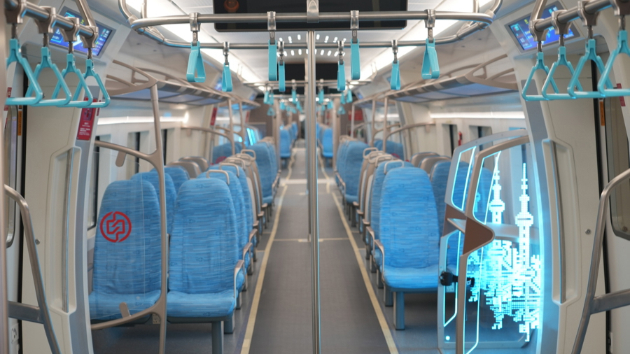 上海市域铁路机场联络线首列车内部图。来源:上海申铁