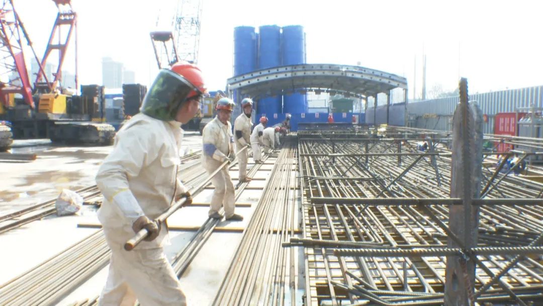 3月19日上午,记者在现场看到,施工单位上海隧道工程有限公司的40余名工人正在紧锣密鼓地进行地墙钢筋笼、反力箱的焊接等地墙施工前期准备工作。洞泾站项目经理部技术主管王志全表示,由于该站距离既有轨交9号线洞泾站仅七八米,为了减少对轨交9号线轨道的影响,增加了地墙设计厚度和深度,因而此次地下连续墙施工过程中面临施工难度大、深度深、地墙加厚等一系列重难点。