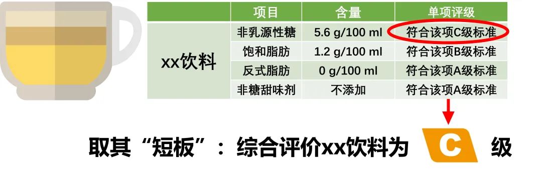 简单来说,一款饮料的“营养选择”分级要看它的“短板”。
