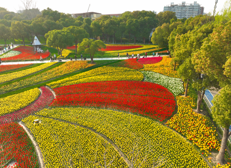 现在正是春园最美的时候,居民们跑过了五彩缤纷的郁金香花田,跑过了晶莹洁白的梨花,跑过了粉嫩可爱的帚桃,跑出了一卷春日美图。