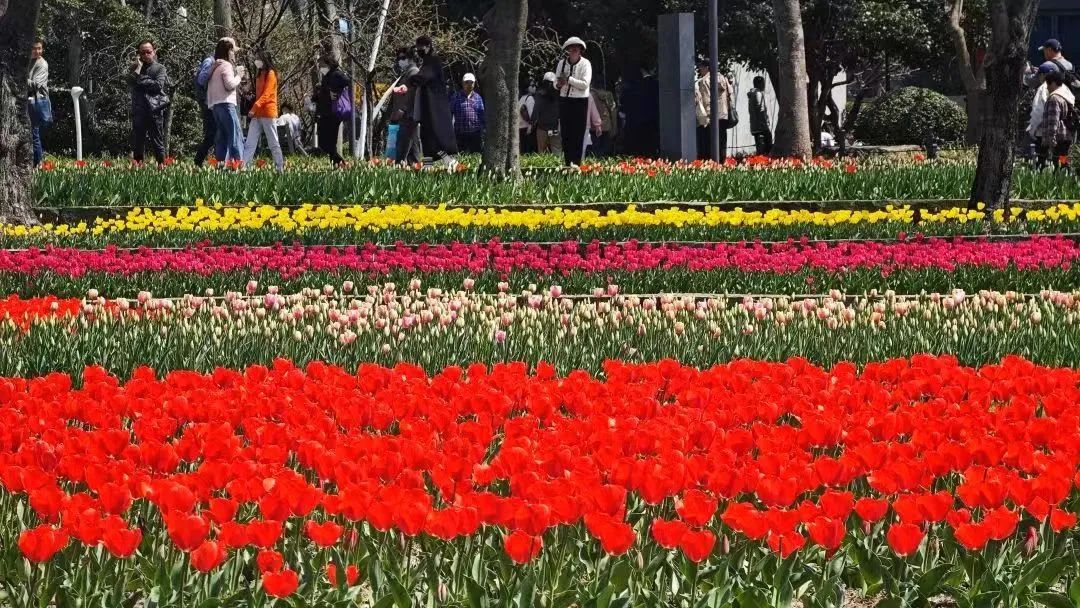 园内50万株郁金香正值盛花期,超过10000平方米的花海让跑友们在锻炼身体的同时,还能享受一场充满了花团锦簇的视觉盛宴。