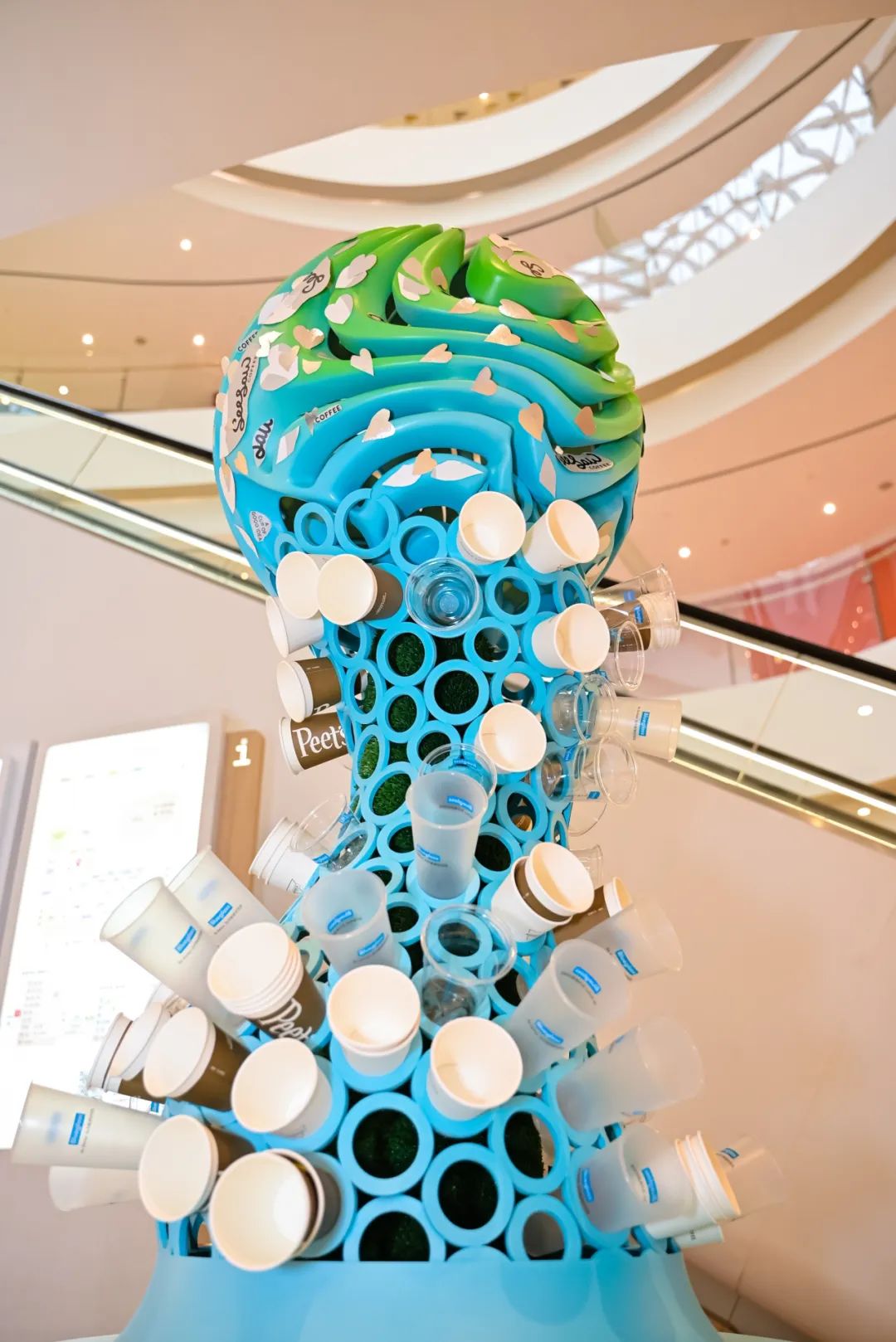 《呼吸地球》:回收咖啡渣与回收材料草皮构建自然景观效果