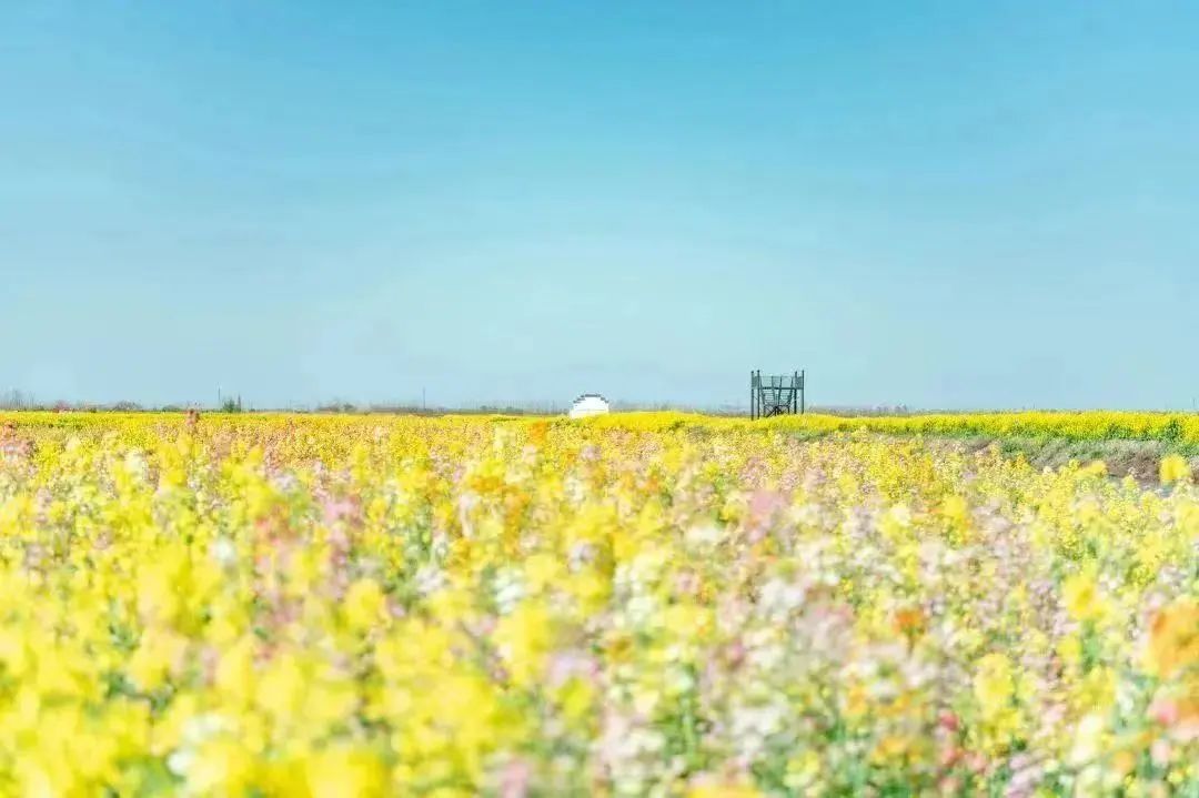 看腻了稀疏平常的金黄油菜花?何不来盐城大纵湖湖塘花海,欣赏一番罕见的七彩油菜花。
