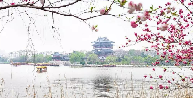 桃花萦古韵,竹径护陈庵。桃园以桃为名,纪念孔尚任在此创作《桃花扇》。桃花含香,灼灼醉人,漫步水榭桃林,品京剧昆曲里的花香踪迹,那一廊一檐,一砖一瓦,便多了几分氤氲和浪漫。