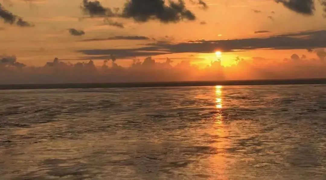 春日清晨,在日出海湾,待一轮红日破云而出,霎时满天尽赤,金色的阳光与波光粼粼的海面相互映衬,仿佛整个世界都被温暖的阳光所拥抱。