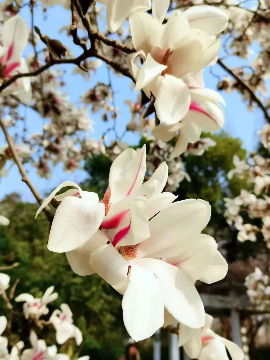 宝华玉兰是中国的特有植物,因产于江苏省镇江市句容宝华山,故称之为宝华玉兰。早春时节,焦山公园里的宝华玉兰竞相绽放,粉白相间,层层叠叠,随风摇曳,分外美丽,微风拂过,又有一股沁人心脾的香气扑鼻而来。