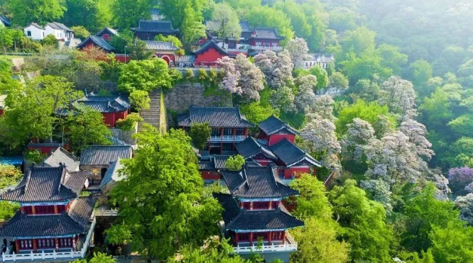 早春的大花果山,万物明朗,如果遇上雨天,花果山美如仙境,雾气氤氲,静谧致美,云收雾散,霞光满天。