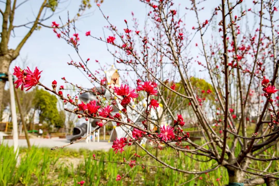 桃浦因“桃树浦河”而得名,古代曾是吴淞江36纵浦之一,两岸盛植桃、李。如今,桃浦致力于打造“水清、绿透、城秀”的“环上桃花源”,其绿化覆盖率高达31.25%,人均绿地29平方米,远超上海市人均公共绿地面积,是踏青赏景、放松心情的好去处。眼下,春意正浓,桃李芬、杨柳青,处处显生机。