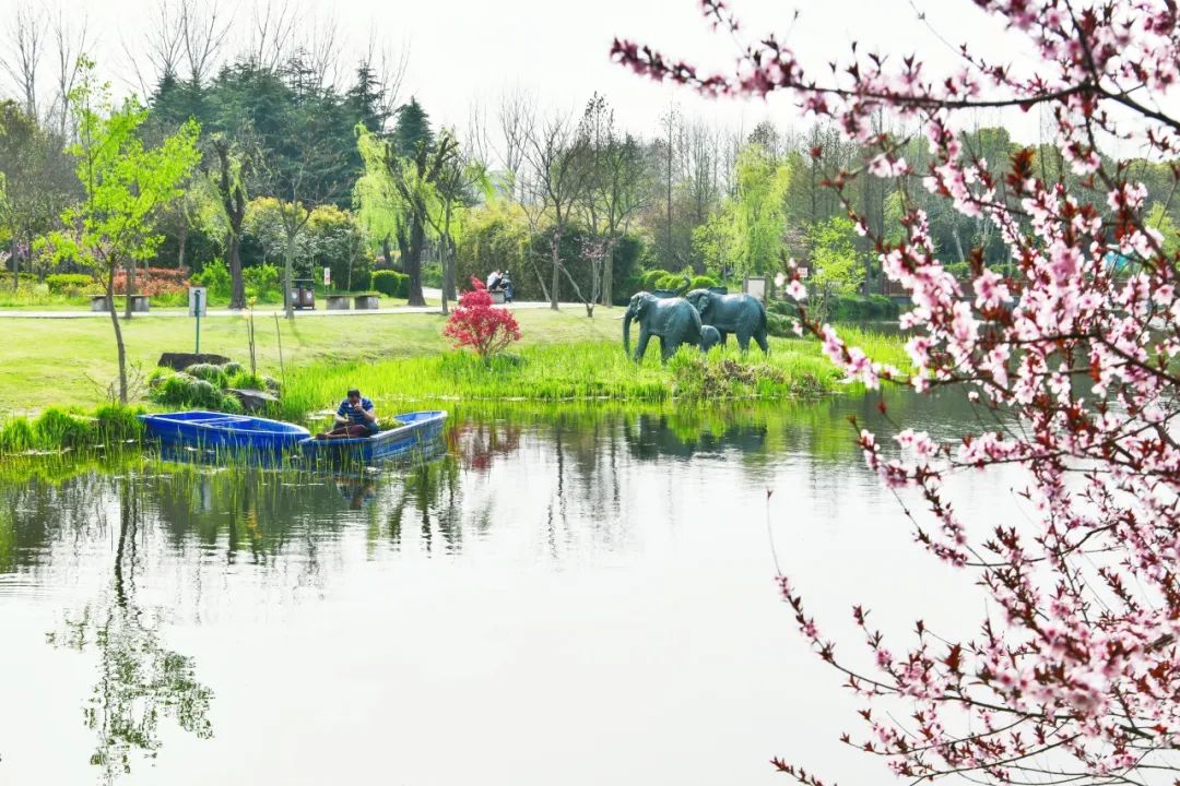 在植物配置上,春光公园以桃花为主,从3月初一直到4月中下旬,桃花竞相开放,沿林缘或水边种植,孤植、片植,浓淡相宜,织就一片花的云锦,营造主题鲜明、浅草慢行的桃源意境。