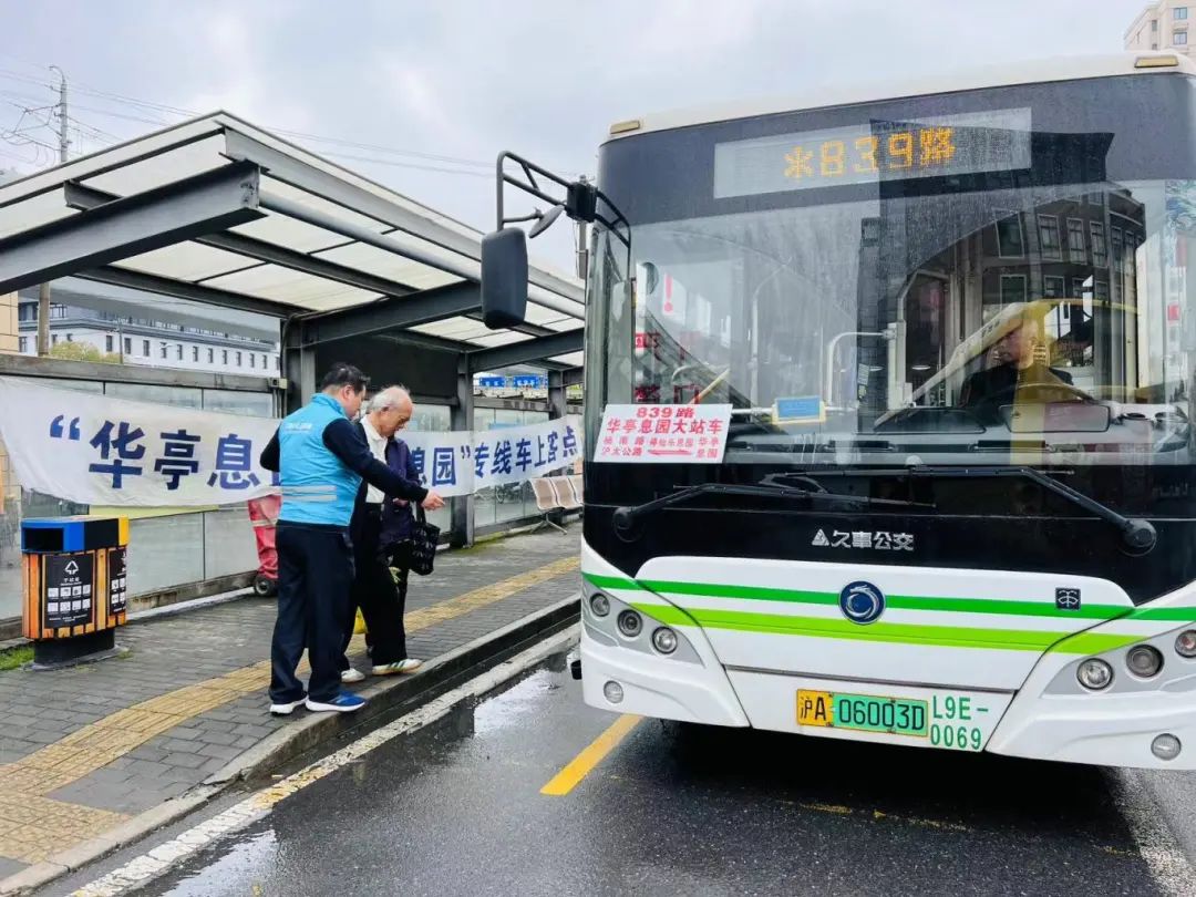 今天上午,在杨南路沪太公路公交枢纽站,写有“华亭息园、仙乐息园”专线车上客点字样的横幅格外醒目,方便扫墓市民进站后就能迅速找到839路公交线路。同时,站点安排了志愿者,引导扫墓市民有序上车。