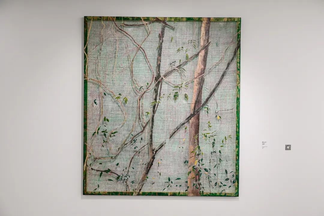 作品来源于艺术家对于游历沂蒙山区的记忆。在繁华喧嚣的城市生活中,艺术家试图仍然保持着对生命本质的关注,直面自然和内心。中国传统的“出世”主题被有机地融入当代绘画的表现手法中,艺术家的创作在“追忆的神游”中连接了古、今和中、西。