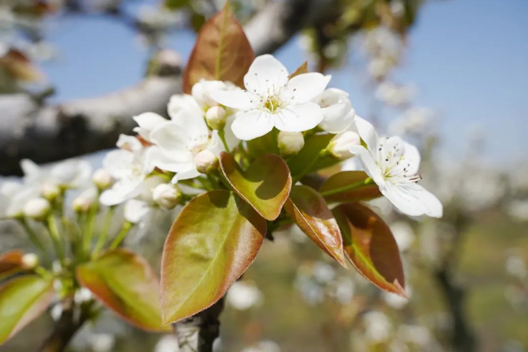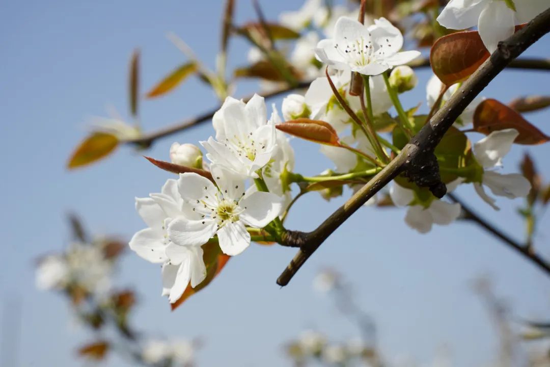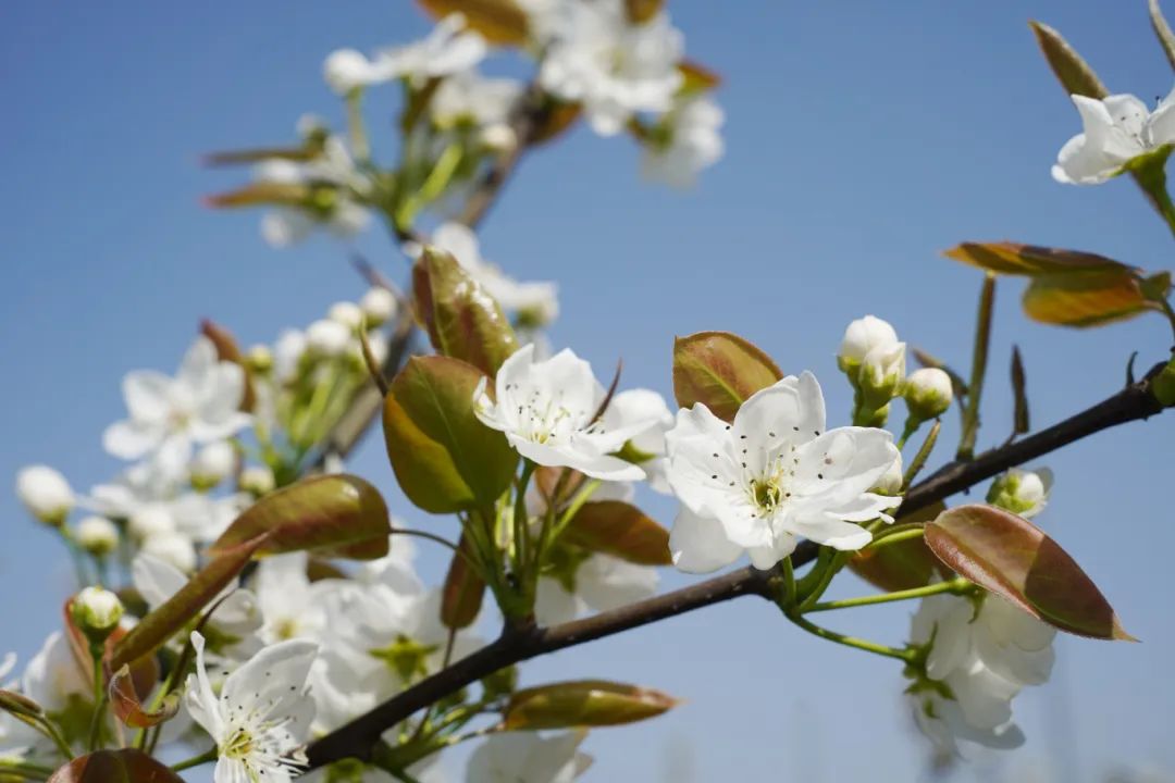 片片梨花在枝头尽情绽放轻盈而热烈将落未落之时又牵袅袅暗香在空中漫漫浮动此时美和感知充盈着身心的角落仿佛纷扬着一场无暇的白雪梦