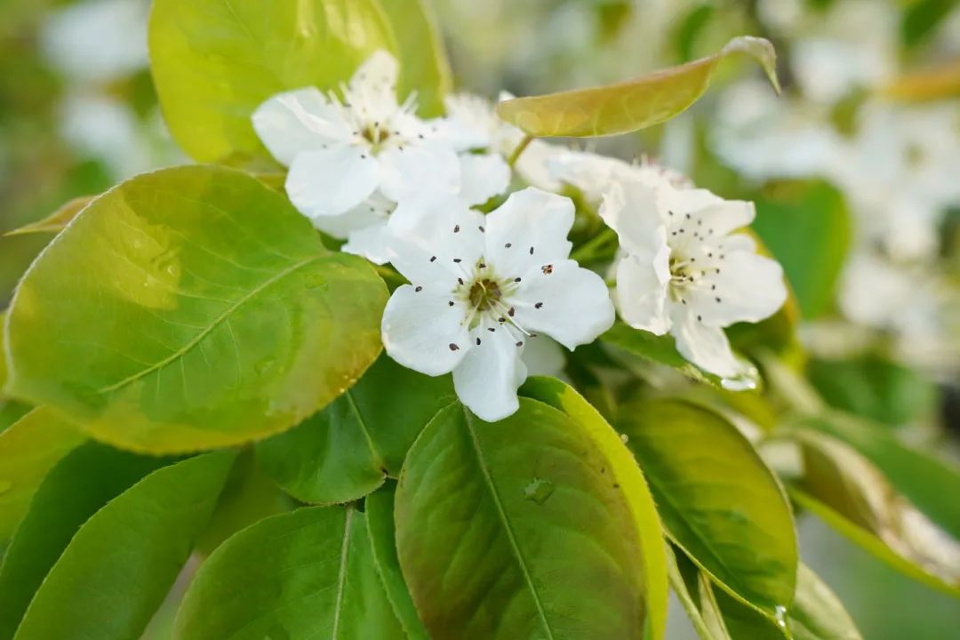 小科普梨树,落叶乔木,叶圆如大叶杨梨花,蔷薇科梨属花期约为7-10天公梨花和母梨花区别是公梨花朵比母梨花朵边上的绿叶更多更密