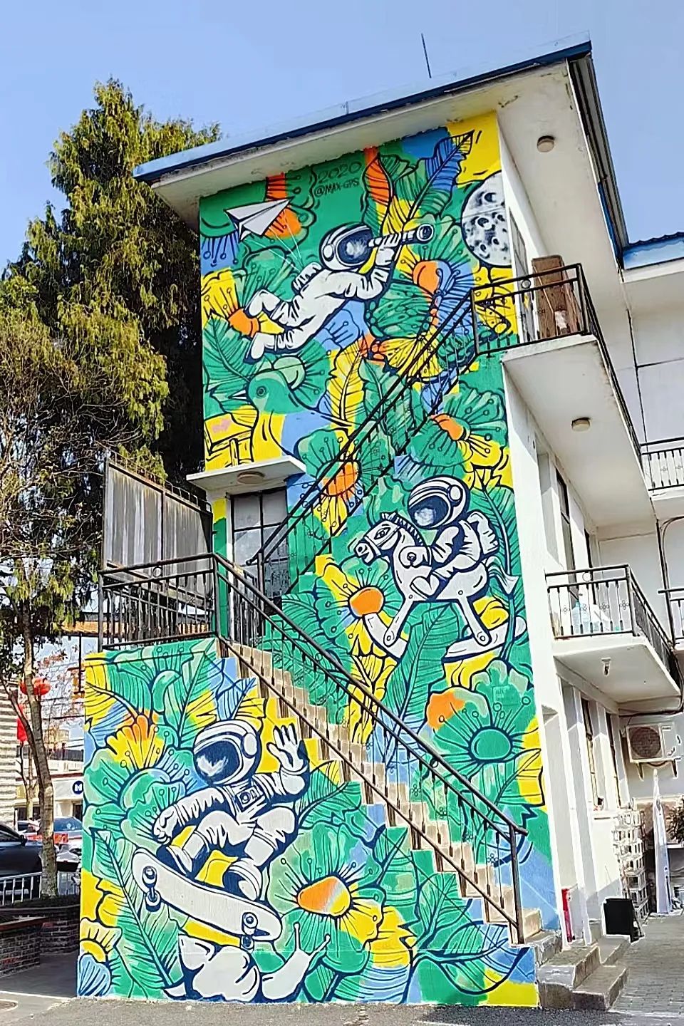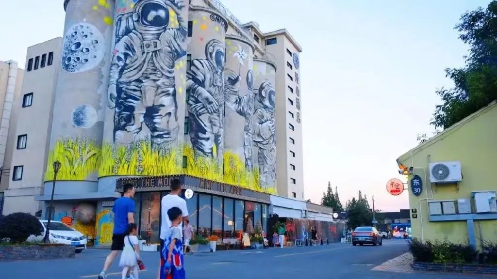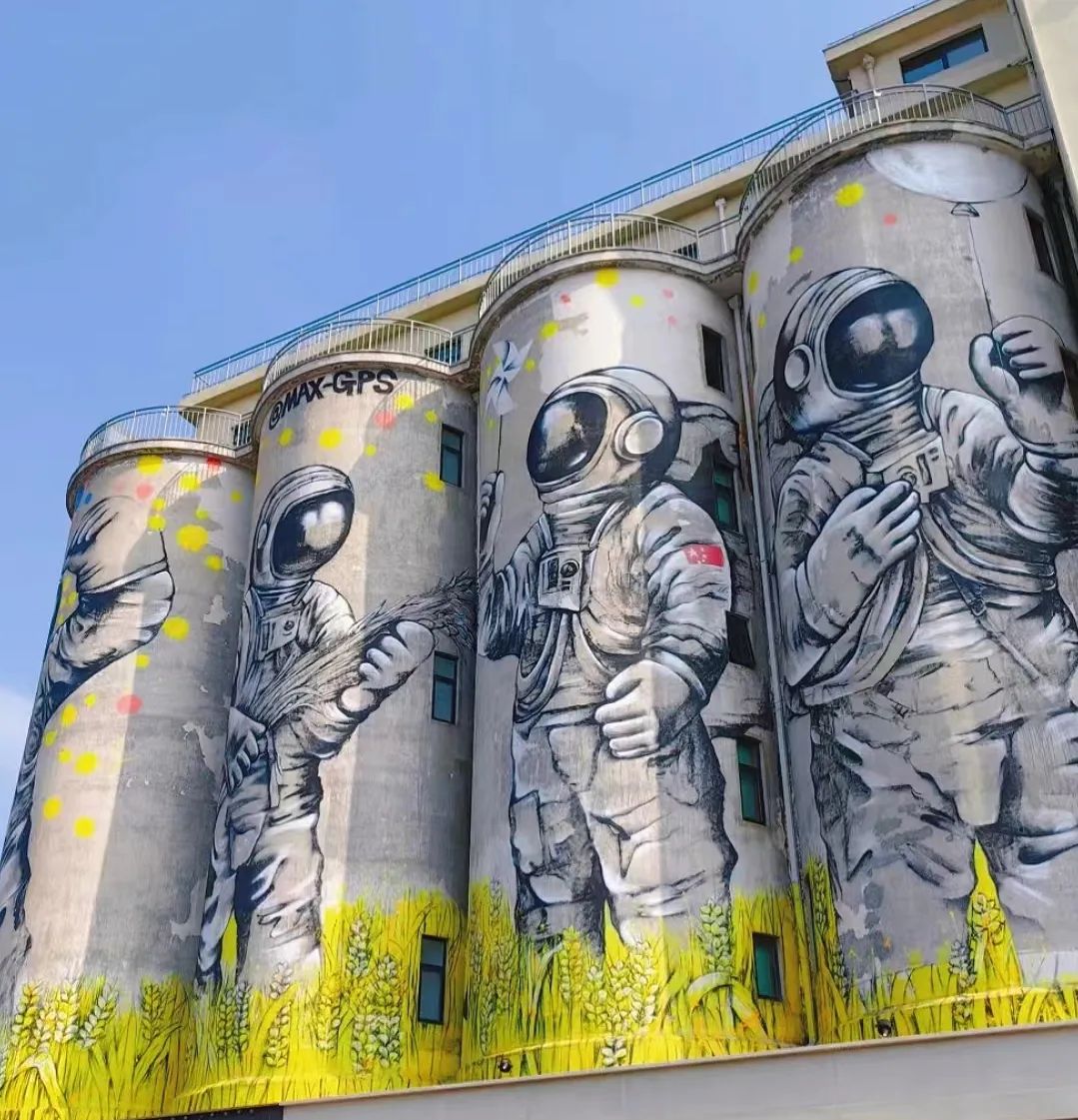 由著名涂鸦艺术家施政创作,是上海唯一的主题筒仓涂鸦,主画面为四位宇航员站在稻田中仰望星空,其中一位手持水稻,致敬袁隆平院士的“禾下乘凉梦”。