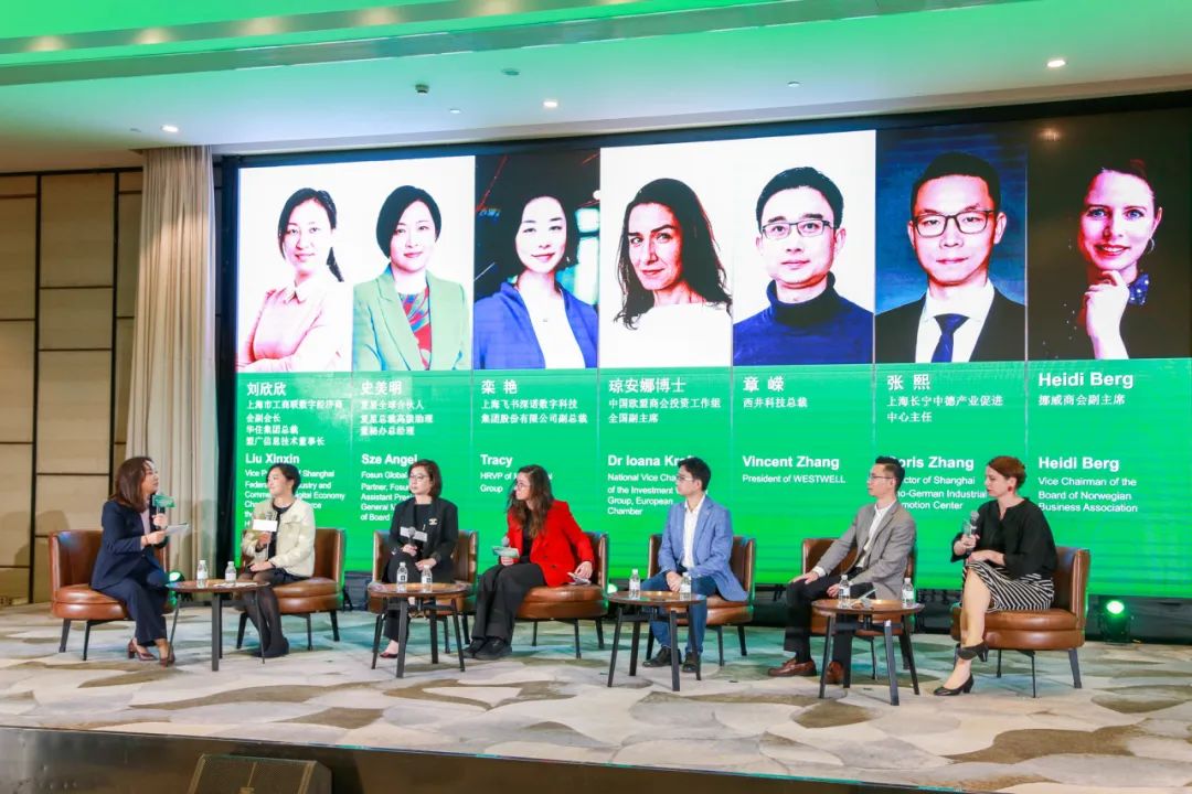 复星国际有限公司全球合伙人史美明、上海飞书深诺数字科技集团股份有限公司副总裁栾艳、中国欧盟商会投资工作组全国副主席琼安娜、西井科技股份有限公司总裁章嵘、上海长宁中德产业促进中心主任张熙、挪威商会副主席Heidi Berg围绕ESG对企业发展的重要性、商会在促进企业长期可持续发展中的作用、企业在参与国际竞争中的ESG实践等话题进行了交流分享,并就与会嘉宾普遍关心的问题进行了悉心解答;活动现场,来自跨境数字营销、ESG专业服务机构、会计师事务所、金融机构的代表与到会企业展开面对面对接交流,互动气氛热烈。