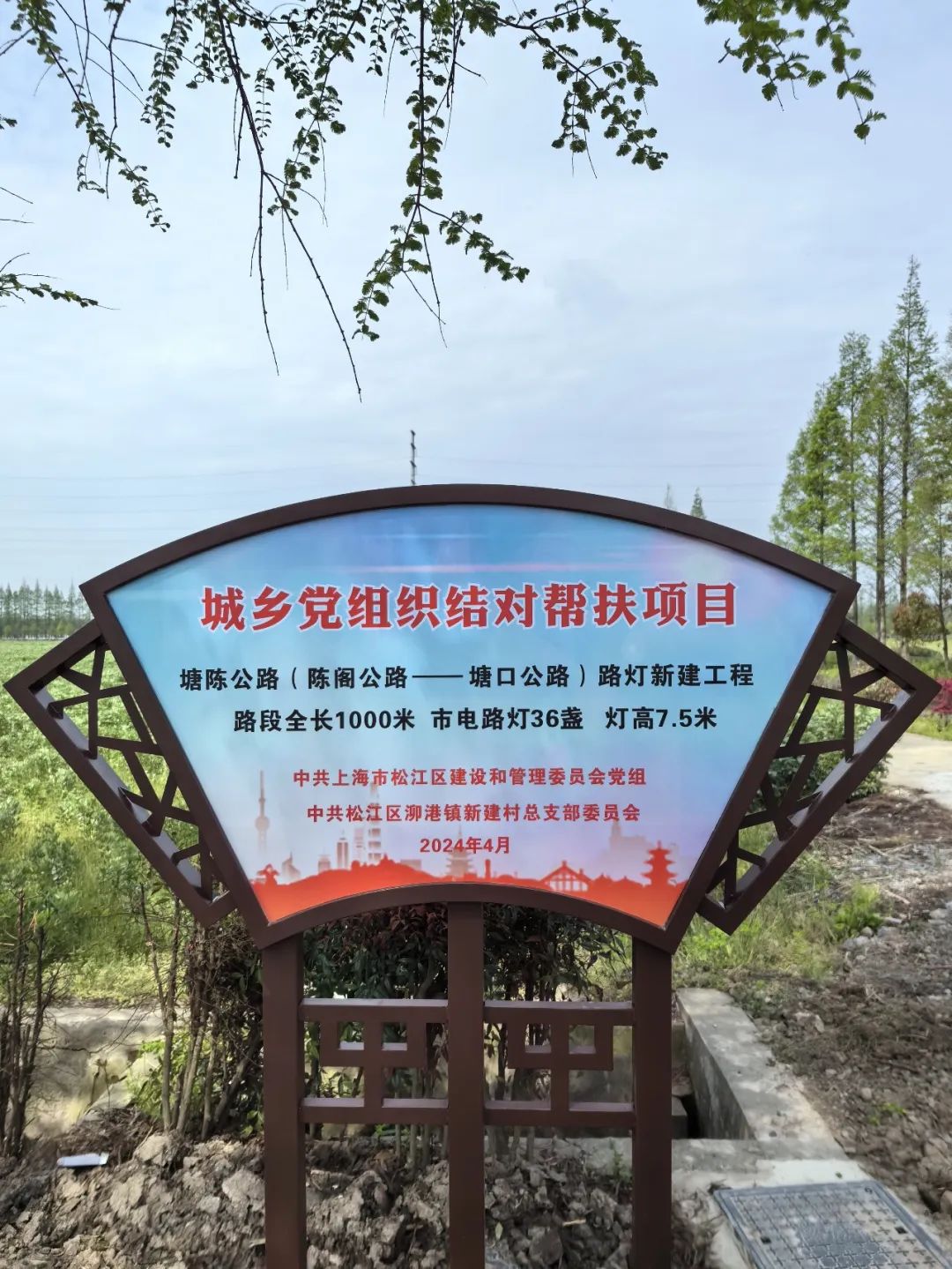在城乡党组织结对合力之下,近日,泖港镇新建村塘陈公路上新安装的36盏路灯亮起,照亮了村民夜归路。