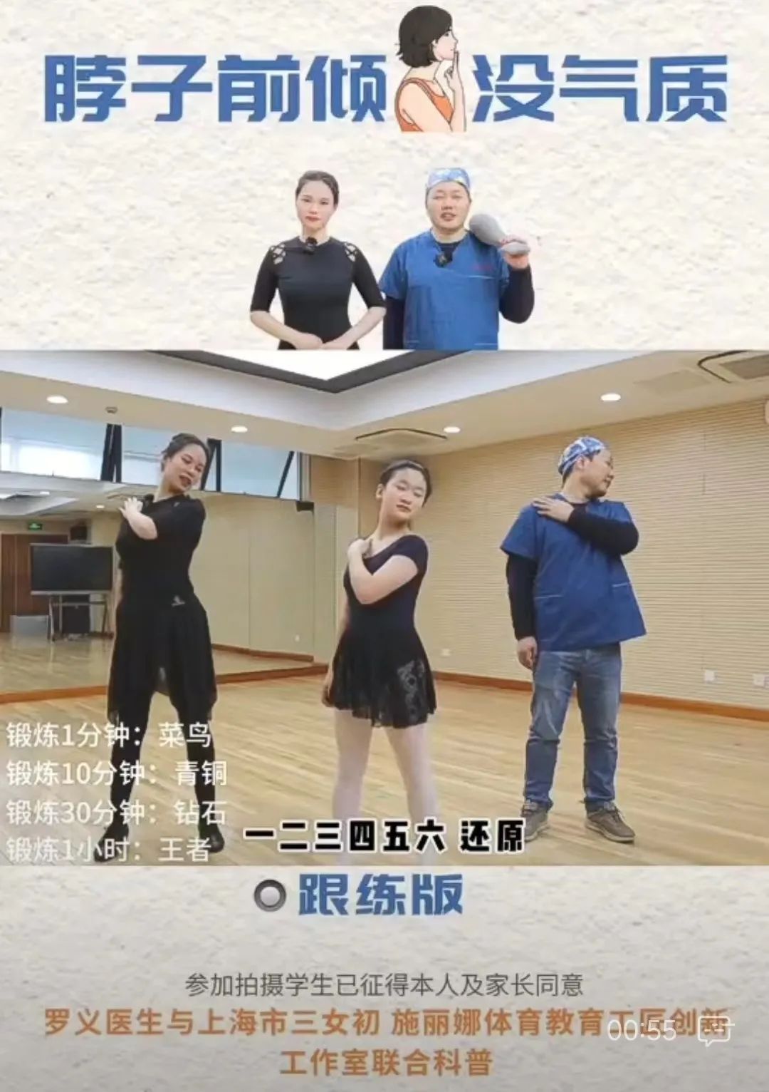 像小马这样从陌生到了解、再到积极参与宣传的学生不在少数。除了分享经历,学生们还作为讲解员、动作示范模特、小演员等角色参与脊柱侧弯视频科普。“目前,我们工作室与儿童医院脊柱侧弯专家罗义医生进行合作制作科普视频,一方面借助外界资源,提升教学和疾病预防的科学性,另一方面让孩子们在充当‘宣传员’的过程中更好地了解脊柱侧弯的知识,提升预防意识,塑造优雅形体。”施丽娜介绍。