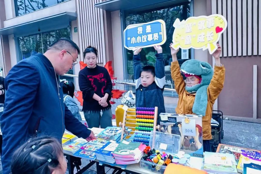 活动当天,“小掌柜”们来到现场,在“儿童议事员”的帮助下,精心布置摊位,摆上招牌正式“开业”。